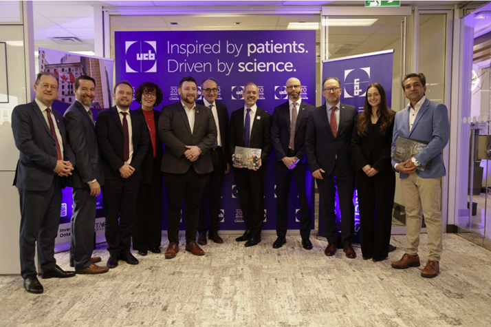 Jean-Christophe and Rodrigo Reis, General Manager, UCB Canada were joined by Tyler Allsopp, Parliamentary Assistant to the Minister of Economic Development, Job Creation and Trade; His Excellency Karl Anthony Amadeus Dhane, Ambassador of the Kingdom of Belgium to Canada; Luc Pirson, Counsellor, Embassy of Belgium in Canada; Bettina Hamelin, President, Innovative Medicines Canada; Jason Field, President and CEO, Life Sciences Ontario; Garrett Tone, Executive Director, Life Sciences, Defence, Aerospace, Invest Ontario; Paula Resende, Investment Lead, Life Sciences, Invest Ontario; and other key stakeholders for a collaborative discussion centred around practical steps to ensuring Canada maintains its commitment to a sustainable life sciences environment over the next five years.